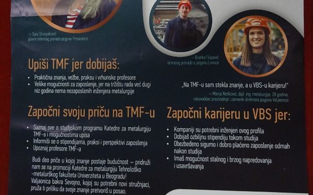 U brošuri za izbor metalurgije, VBS navodi da je bakar nezamenljiv kao metal budućnosti i mlade poziva da naprave pravi izbor.