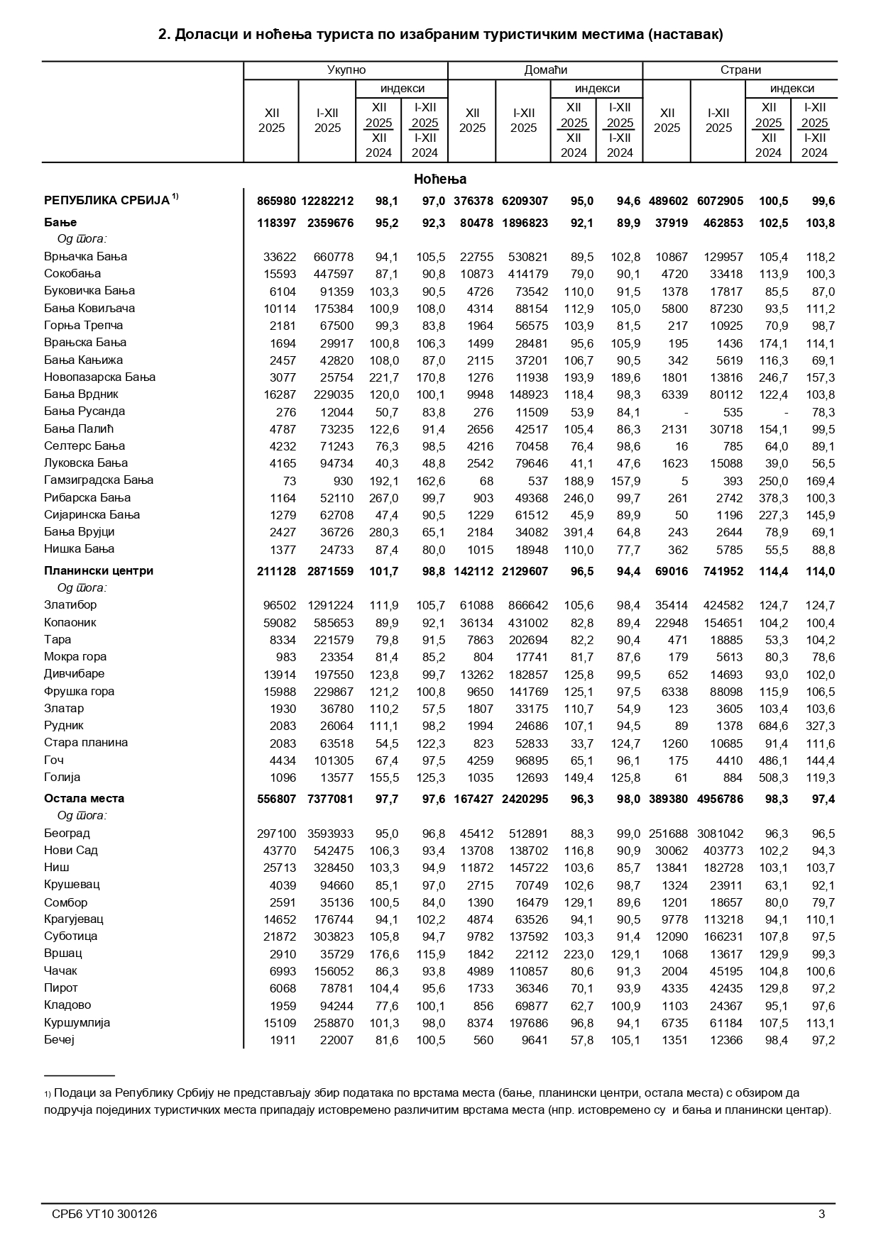 Od tog broja, u navedenom periodu ostvareno je 202.694 noćenja domaćih i 18.885 noćenja stranih gostiju, što predstavlja povećanje broja noćenja stranih turista na Tari za skoro 5 odsto.