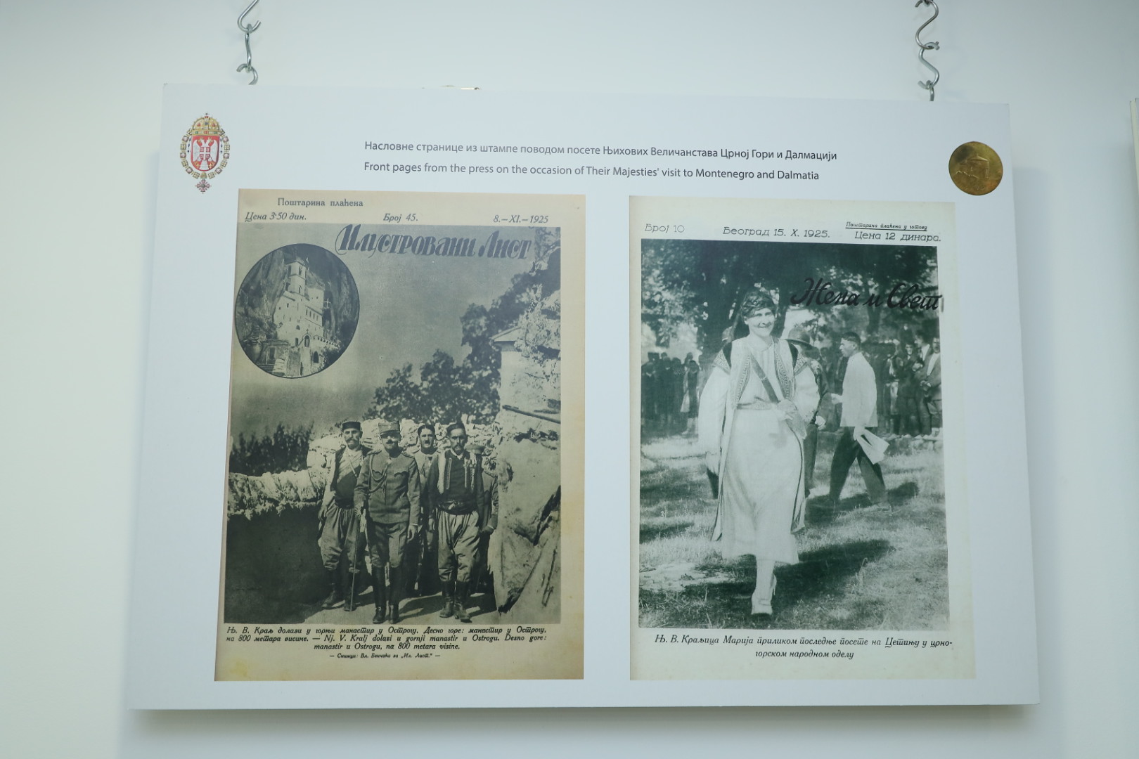 Postavku čini 21 pano fotografija obnove kapele i kraljevskog putovanja, ilustracije nacrta obnove crkve i fresaka koje je oslikao Uroš Predić, prvi put je prikazana prošle godine u Belom dvoru, na stotu godišnjicu obnove ove crkve koju je finansirao kralj Aleksandar I Karađorđević. Prema rečima arhitekte i člana Krunskog saveta Dragomira Acovića, ova izložba govori o tome kako su se našla dva pojma našeg života i naše istorije.