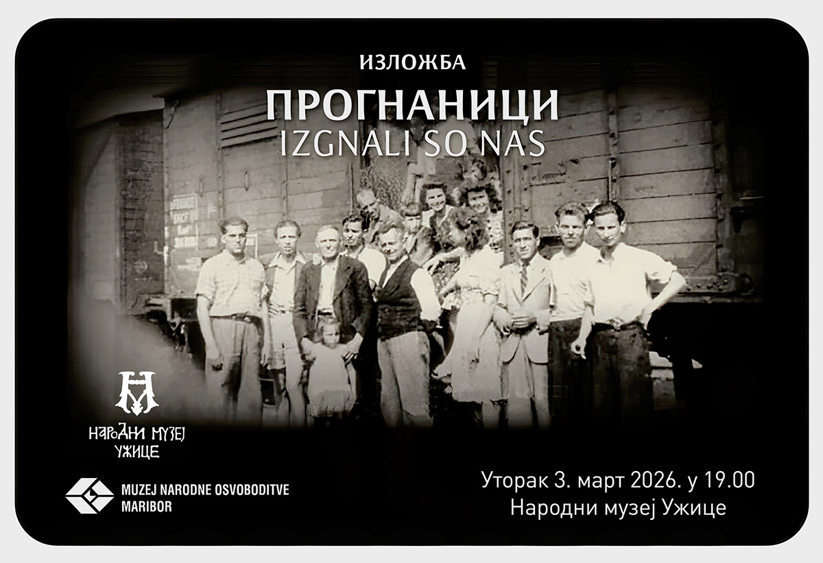 U Narodnom muzeju Užice, u utorak, 3. marta u 19 časova, biće otvorena izložba „Prognanici“ (Izgnali so nas). Autor postavke je dr Irena Mavrič Žižek, a izložba dolazi iz Muzeja narodnog oslobođenja Maribor (Slovenija).