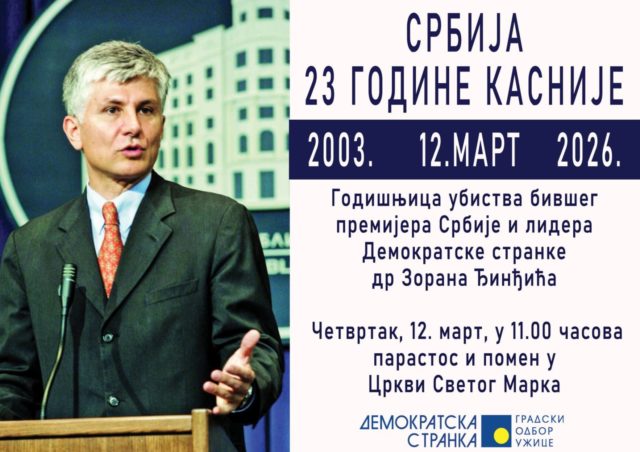 Pomen organizuje Demokratska stranka, Gradski odbor Užice, a događaj će biti posvećen odavanju pošte jednom od najznačajnijih političkih lidera Srbije s početka 21. veka.