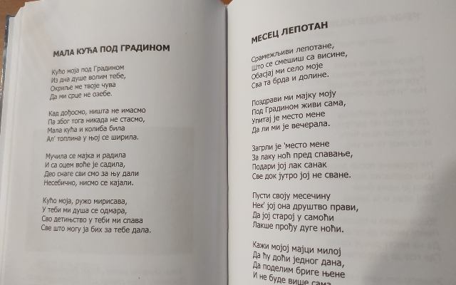 – Najviše volim da pišem o rodnom domu, Drežniku i odrastanju. Moja pesma „Mala kuća pod Gradinom“ prevedena je u Sankt Peterburgu na ruski jezik. Ta pesma biće uskoro objavljena i u zajedničkoj zbirci „Izvorište života“ književne sekcije „Kluba tri“ iz Užica – navodi naša sagovornica.