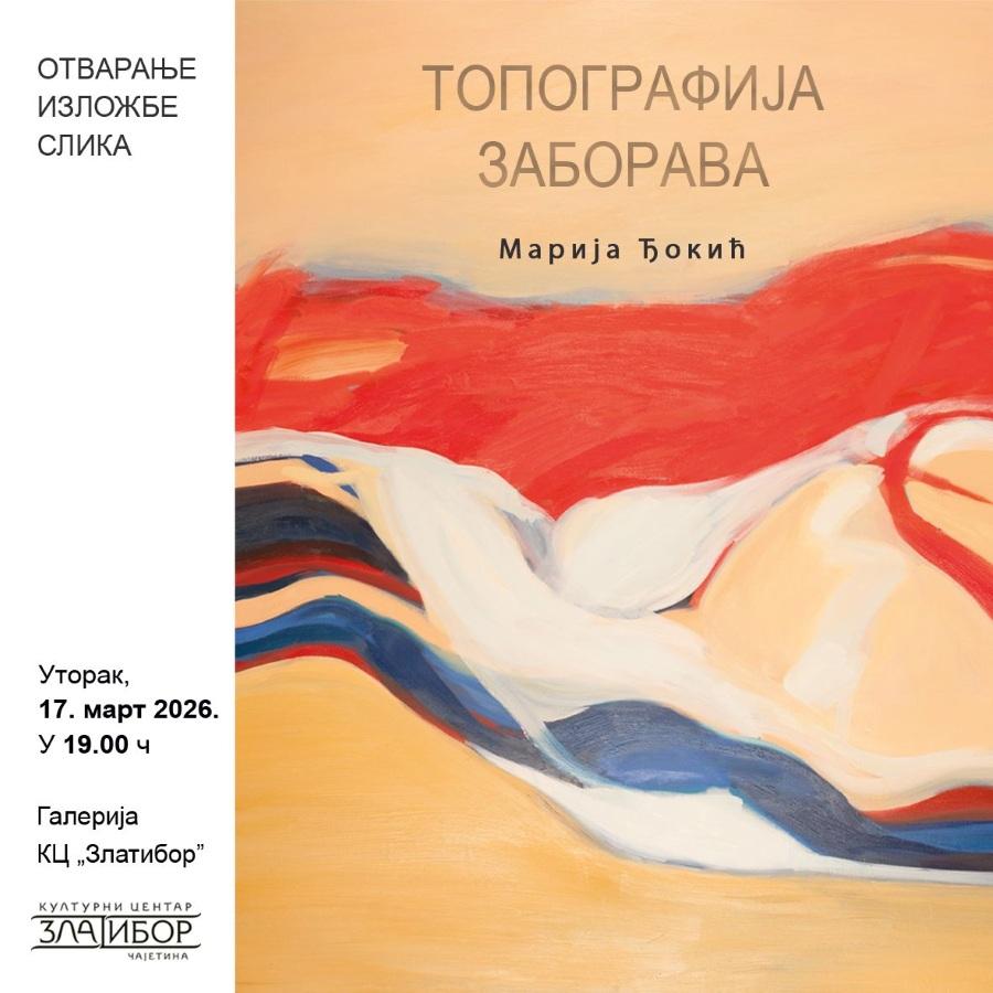 U galeriji Kulturnog centra na Zlatiboru u utorak, 17. marta u 19 časova biće otvorena izložba slika autorke Marije Đokić pod nazivom „Topografija zaborava“.