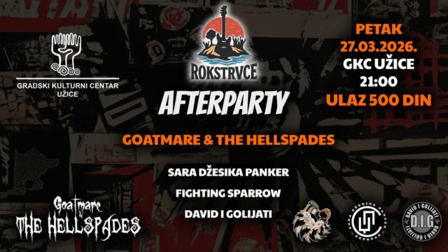 U petak, 27. marta, u klubu GKC-a nastupiće bendovi Goatmare & The Hellspades, Sara Džesika Panker, Fighting Sparrow i David i Golijati. Početak svirke je u 21 čas, a ulaznice se mogu nabaviti na biletarnici po ceni od 500 dinara.