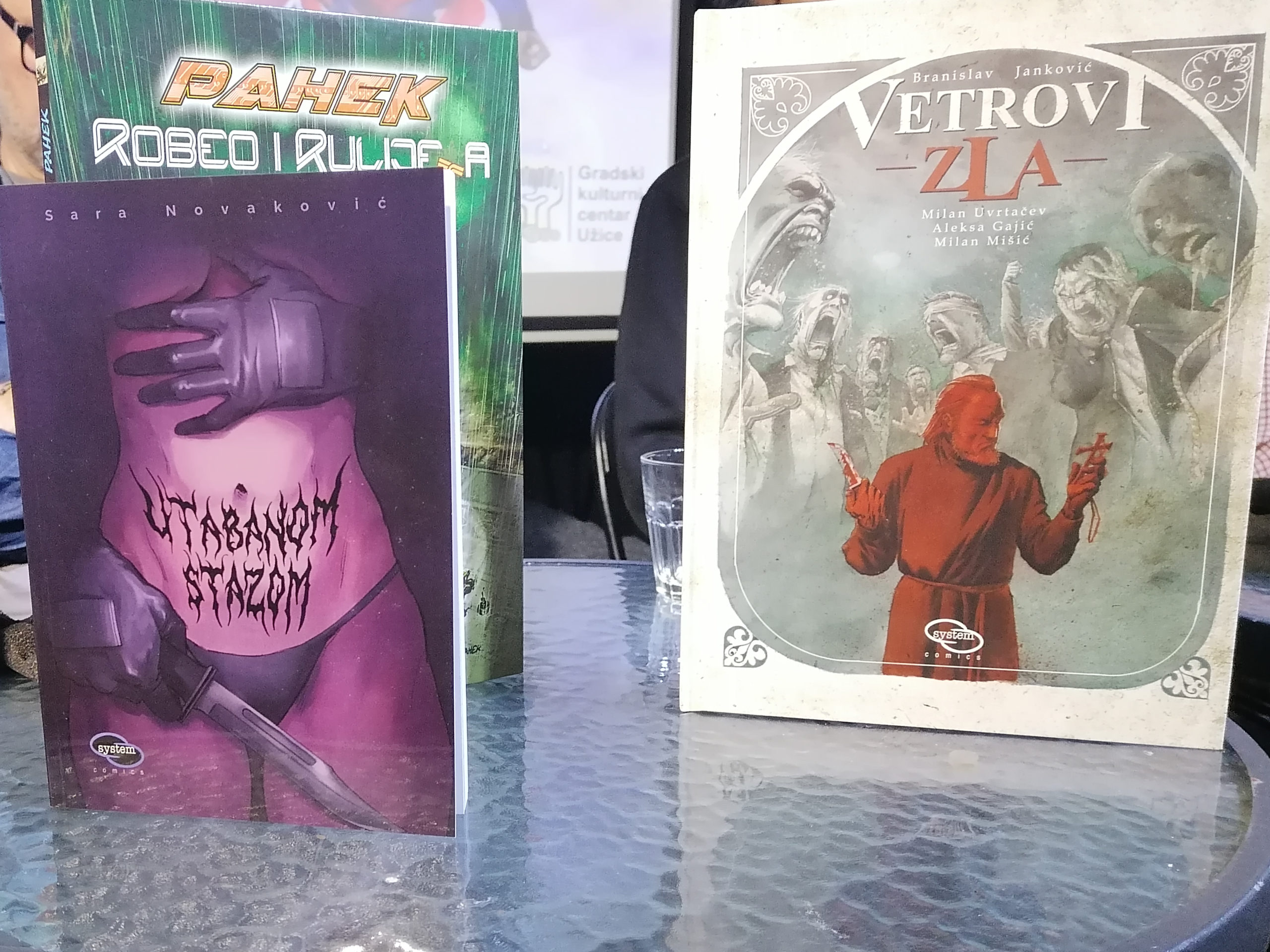Na kraju večeri predstavljena su nova izdanja „System Comics“-a. O strip-adaptaciji romana Branislava Jankovića „Vetrovi zla“ govorio je izdavač Igor Marković, kao i autori Milan Uvrtačev, koji je pisao i scenario, i Aleksa Gajić. Oni su zajedno sa Milanom Mišićem izradili crteže.