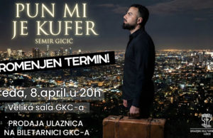 Zbog zdravstvenih problema glumca, termin premijere monokomedije „Pun mi je kufer“ Semira Gicića, pomeren је za sredu, 8. april u 20 časova. Ulaznice kupljene...
