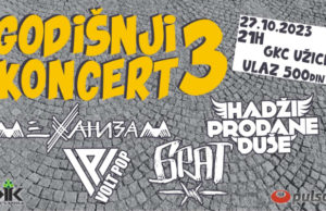 U petak 27. oktobra u 21 čas u Gradskom kulturnom centru u Užicu, na festivalu “Godišnji koncert", nastupaju bendovi “Volt Pop”, “Hadži Prodane Duše”,...