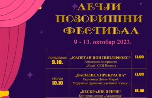 Dečji pozorišni festival održave se od 9 do 13. oktobra u Domu kulture u Čajetini, u organizaciji Kulturnog centra Čajetina.