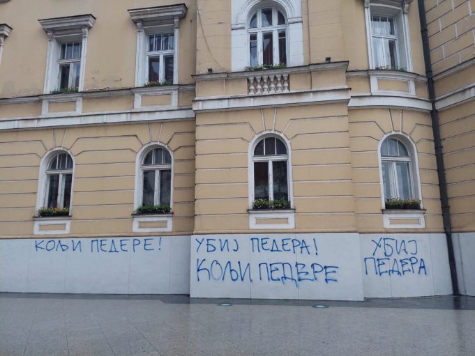 Grafiti sa porukama mržnje i uvredljivim sadržajima prema LGBT osobama osvanuli su jutros na Gradskoj kući u Užicu, ali su ubrzo prekrečeni.